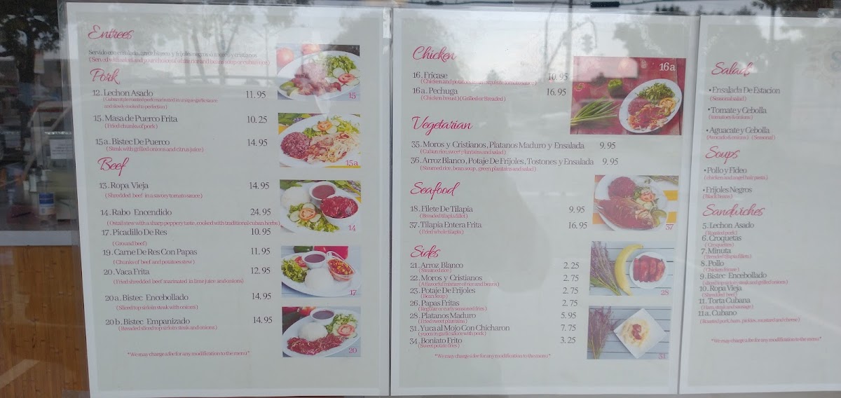 The menu is well suited for casual dining experiences, whether ordering a full meal or lighter bites. It provides an authentic range of Cuban and Caribbean fare, with options that accommodate varied tastes and mealtime preferences.